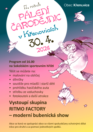 Všichni jsou srdečně zváni na tradiční PÁLENÍ ČARODĚJNIC.