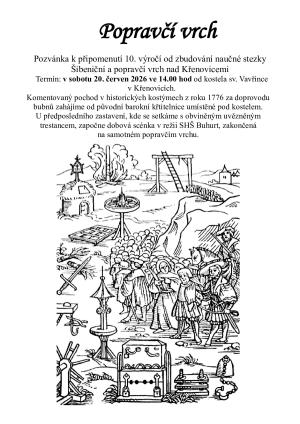 Pozvánka k připomenutí 10. výročí od zbudování naučné stezky Šibeniční a popravčí vrch nad Křenovicemi.