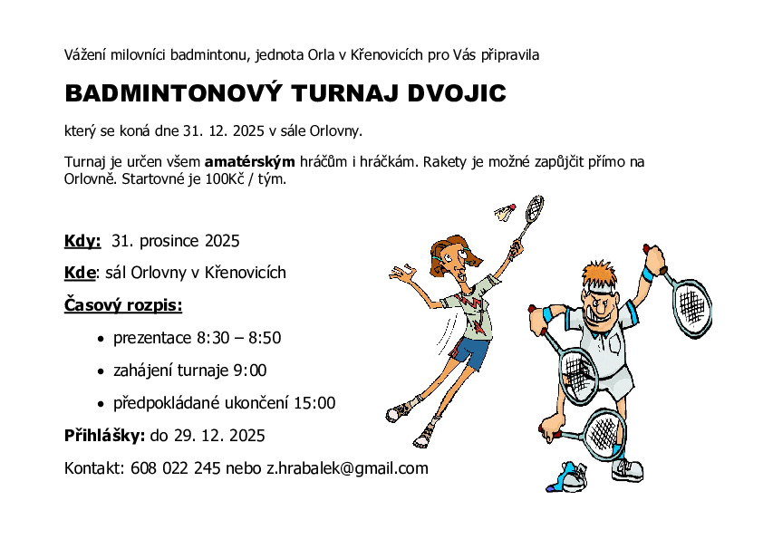 Kontakt: 608 022 245 nebo z.hrabalek@gmail.com