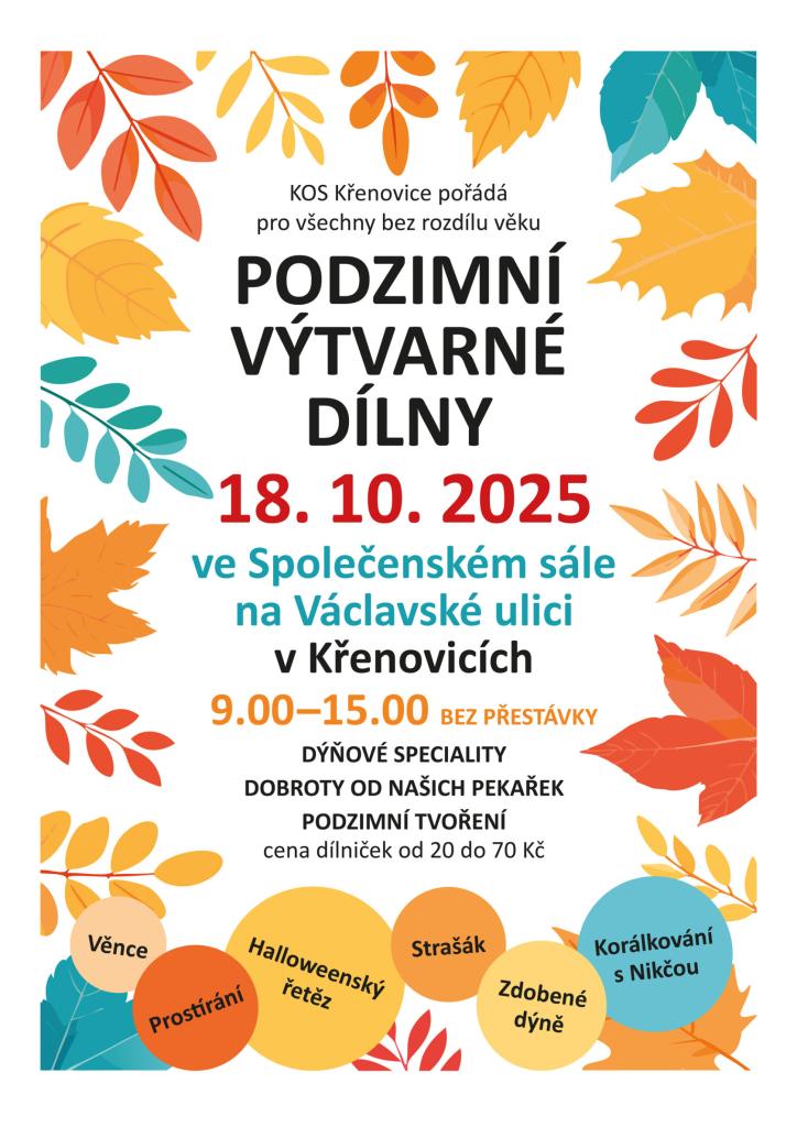 Přijďte si vyrobit podzimní dekorace (věnce, prostírání, Halloweenský řetěz, strašáka, zdobenou dýni, korálkové ozdoby) a ochutnat podzimní speciality.