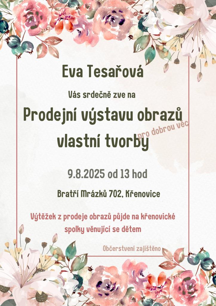 Typ akce: ostatní (akce pro celou rodinu, akce pro seniory, akce pro veřejnost, charitativní akce/sbírka), trhy, výstavy, veletrhy (výstava obrazů - malířství)